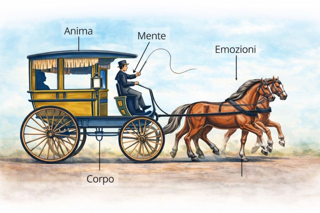 Il cocchiere è la mente, con i suoi pensieri e le sue emozioni.